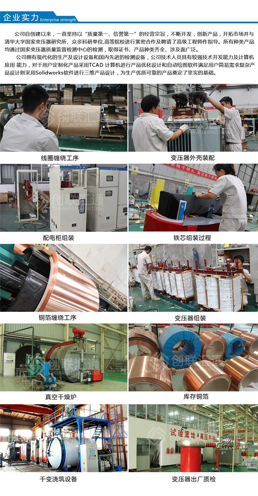 高壓線圈采用分段口筒式結(jié)構(gòu),且整個(gè)線圈導(dǎo)體都被環(huán)氛樹脂的固體絕緣層所包封,環(huán)抓樹脂及固化劑選用亨斯邁精細(xì)化工部(HUNTSMAN )高等級(jí)絕緣材料。線圈導(dǎo)體與樹脂絕緣層形成一個(gè)完整的剛體,機(jī)械強(qiáng)度好,耐受短路的能力強(qiáng),且環(huán)氛樹脂的耐壓強(qiáng)度高.另外由于整個(gè)線圈導(dǎo)體都被環(huán)氧樹脂的固體絕緣層所包封,因而不僅潮氣難于浸入,而而且也完全阻斷了導(dǎo)體被各種有害氣體和腐蝕性化學(xué)成份侵害的可能,因而其防潮與防污的性能特別好。